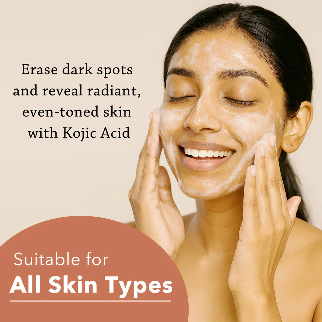 ✅ Infused with Kojic Acid – Effectively targets dark spots, pigmentation, and blemishes by reducing melanin production, promoting a visibly brighter and more even skin tone.