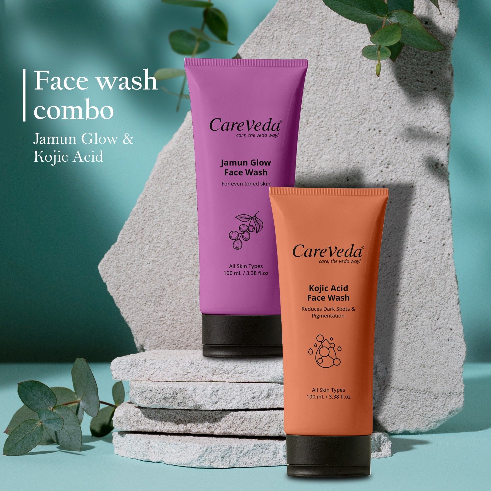 🌿 Dual Action Combo – Includes Jamun Glow Face Wash (100gm) for freshness & glow + Kojic Acid Face Wash (100gm) for brightening & pigmentation control.