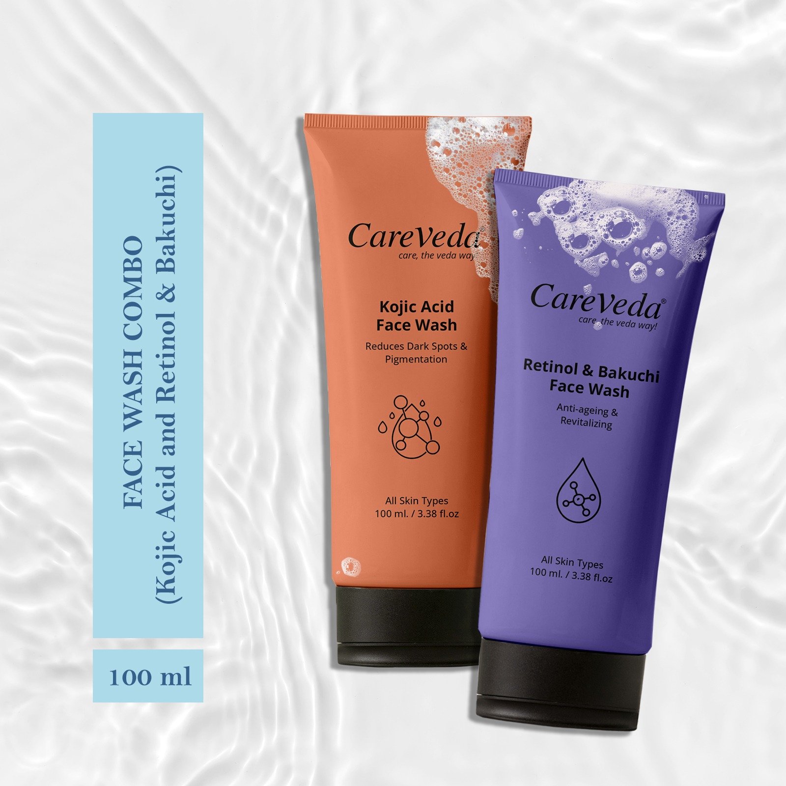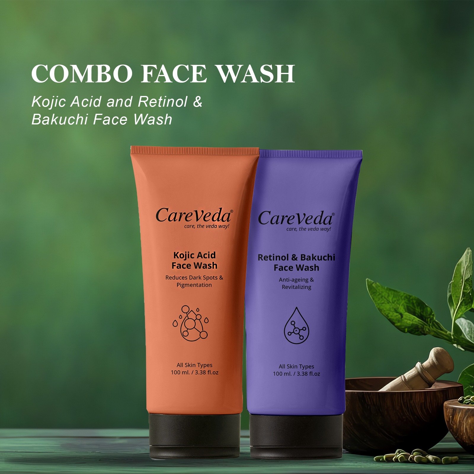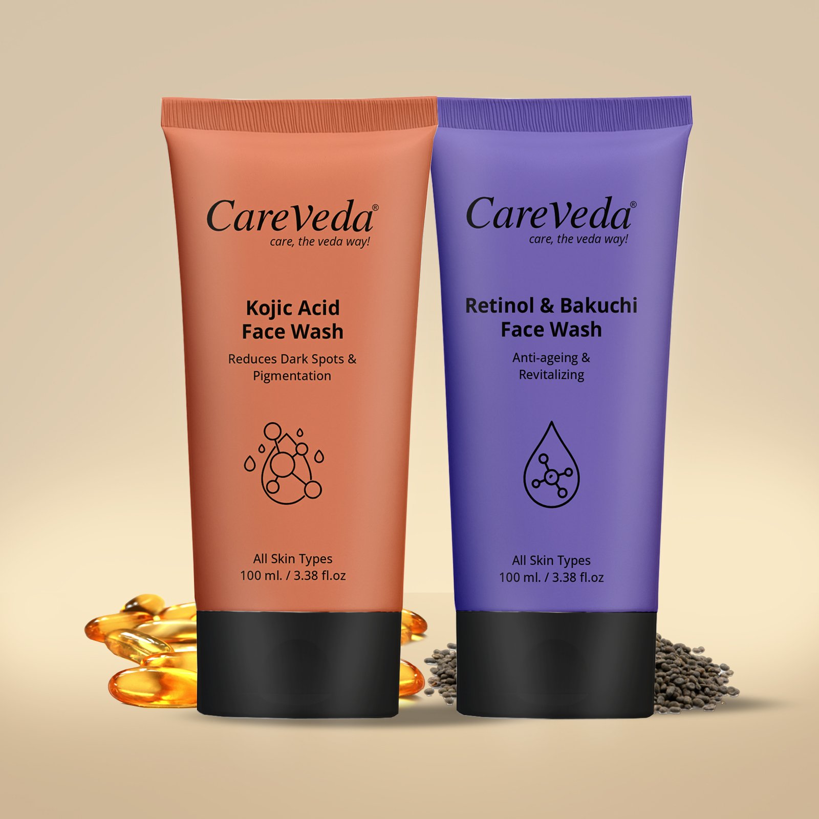 Unveil brighter, smoother, and healthier skin with the CareVeda Skin Radiance Combo. This set combines the skin-brightening power of Kojic Acid Face Wash with the rejuvenating benefits of Retinol & Bakuchi Face Wash, giving you a complete skincare routine designed for all skin types. Together, they target pigmentation, dullness, and early signs of aging—helping your skin glow with confidence.
